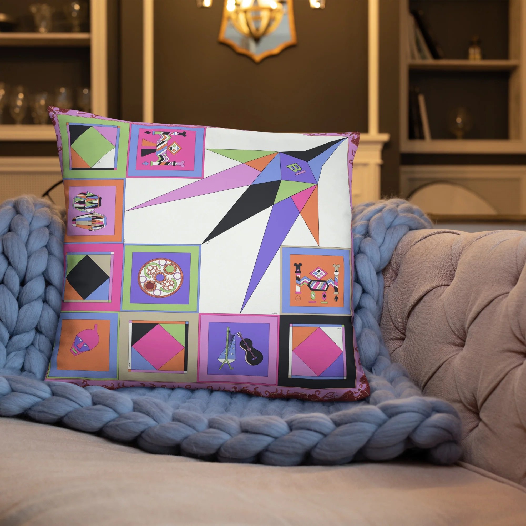 Take this magnificent Braniff Pucci design pillow with you to Uruguay; available from BraniffBoutique.com.