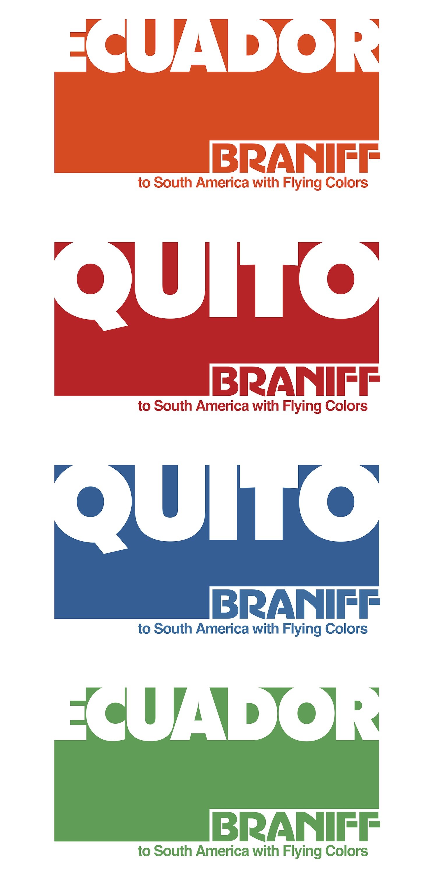 Braniff’s colorful advertising used today beautifully excites the senses for travel to Ecuador, which can be reserved for you via FlyBraniff.com. Photo: Braniff Airways, Incorporated, Copyright